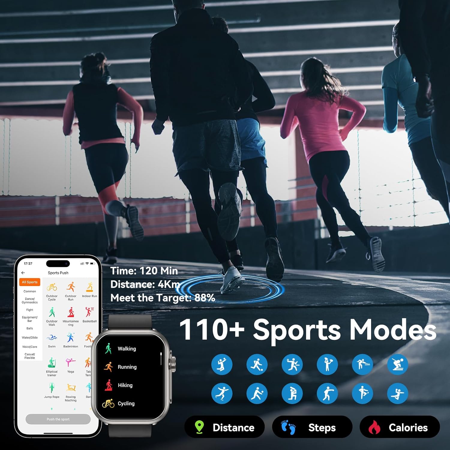110+ Sport Modes and IP68 Waterproof: Fitness watch comes with 110+ sport modes to meet all your fitness needs. When you exercising, the watch precisely tracks your performance metrics. This smartwatch is rated with an IP68 waterproof standard