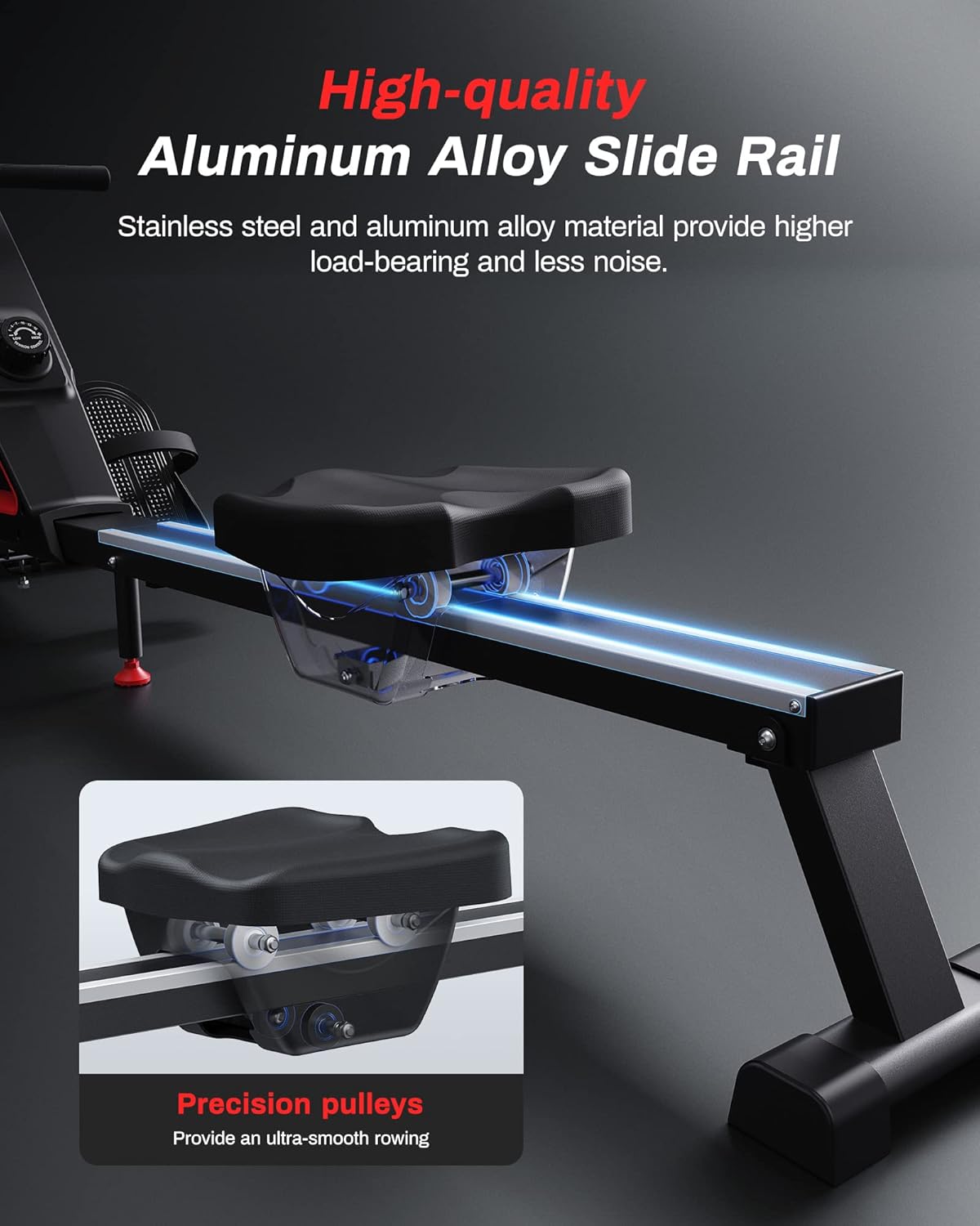 Magnetic Rowing Machines for Home (R05), Water Rowing (R10), 16 Levels of Quiet Resistance Foldable Compact Rowing Machine 350 LB Weight Capacity with Bluetooth, App Supported, Tablet Holder
