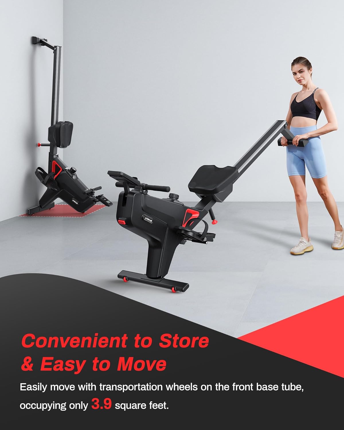 Easy to use and Store: The UTRYUP rowing machine comes 90% pre-assembled, allowing for easy installation in just 20 minutes. It is equipped with front base transport wheels and a vertical storage design, making it effortless to move, store, and use even in small spaces.